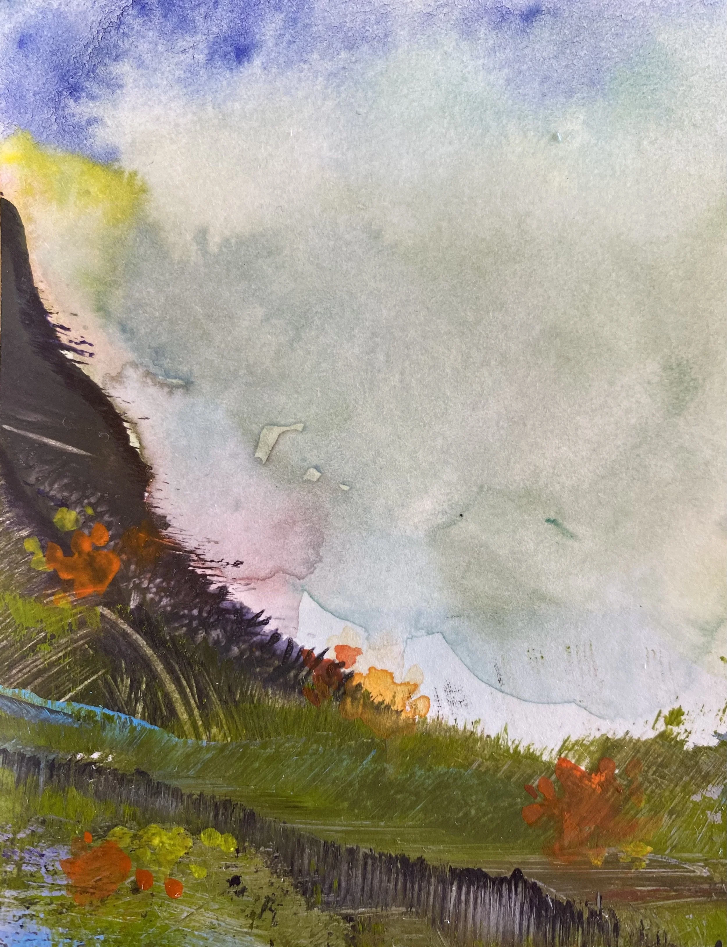 “I had the wonderful opportunity of taking a painting workshop with David Skinner. I was a bit apprehensive at the beginning as this was the first art workshop I’ve ever taken and the first time I’ve painted landscapes. I wasn’t sure if I’d feel incompetent or completely untalented. David took me from right where I was and was encouraging, supportive, and, overall, an outstanding teacher. I left with new techniques and ideas, and excitement about painting landscapes in varied ways, colors, and perspectives. I have a lot of practicing to do but would highly recommend his workshops and hope I get to take another one in the future. David, thanks for sharing your talent with someone who admires your work.”